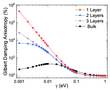 (图片说明:计算的 Fe₃GaTe₂ 在垂直与面内磁化方向之间的阻尼各向异性。来源:Chen et al.)